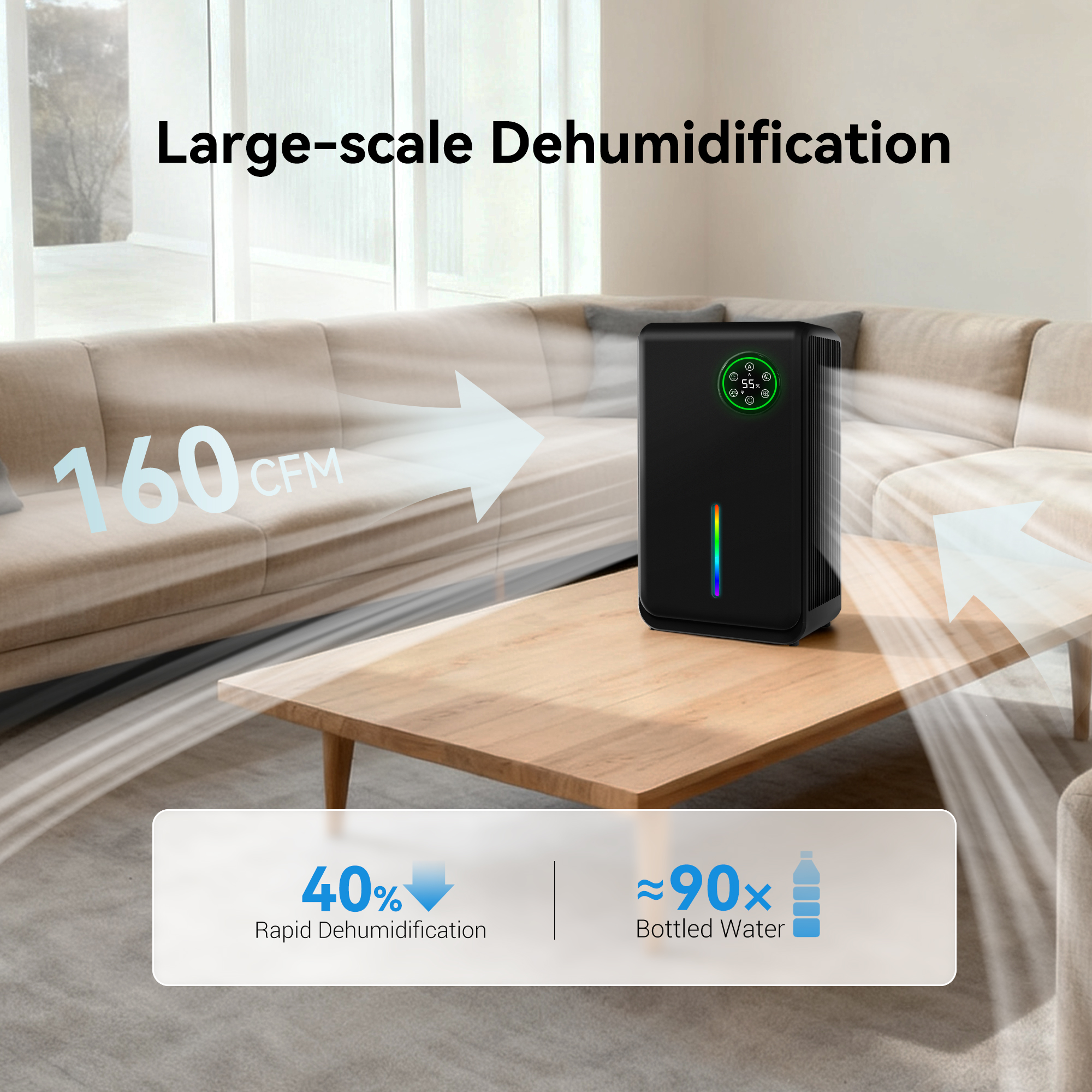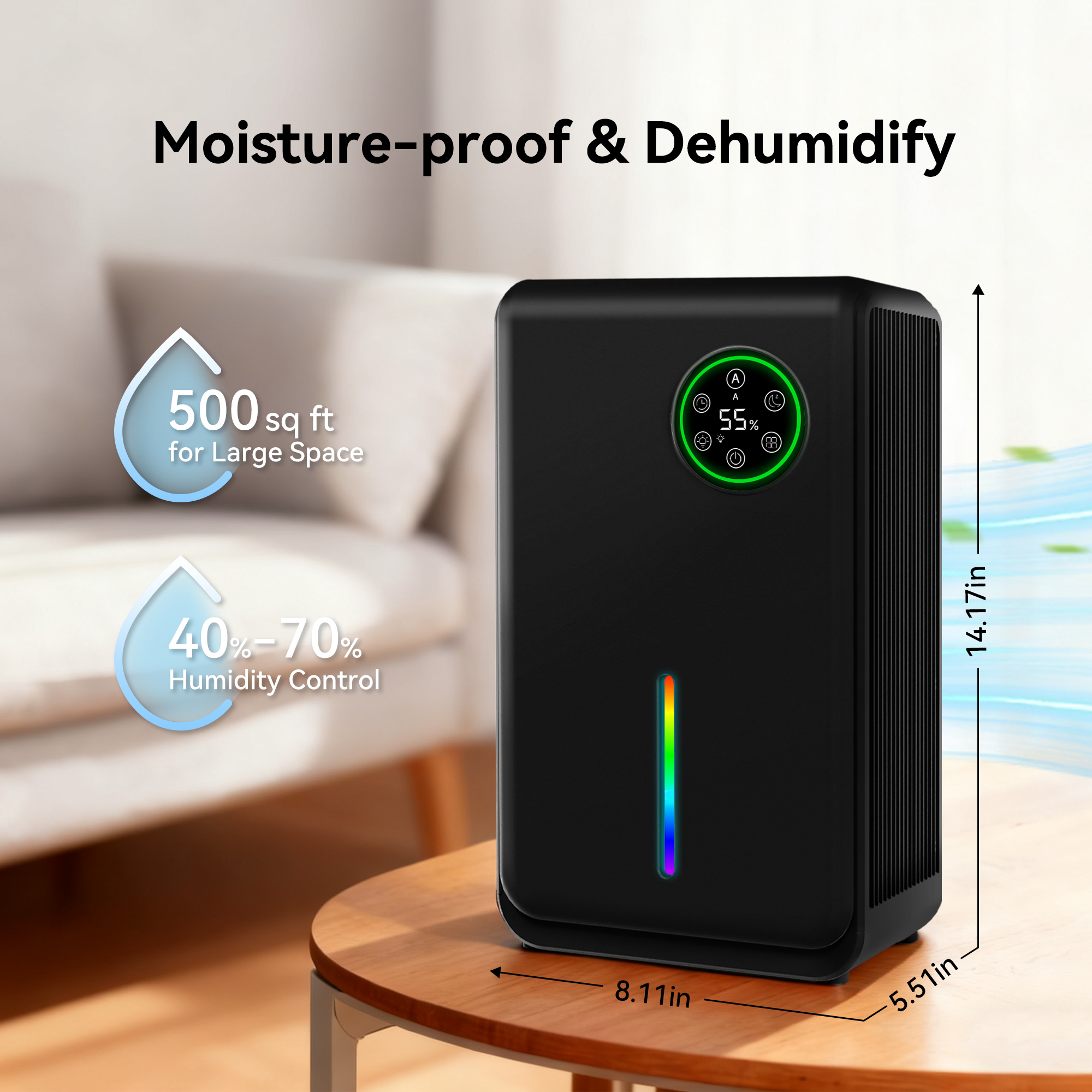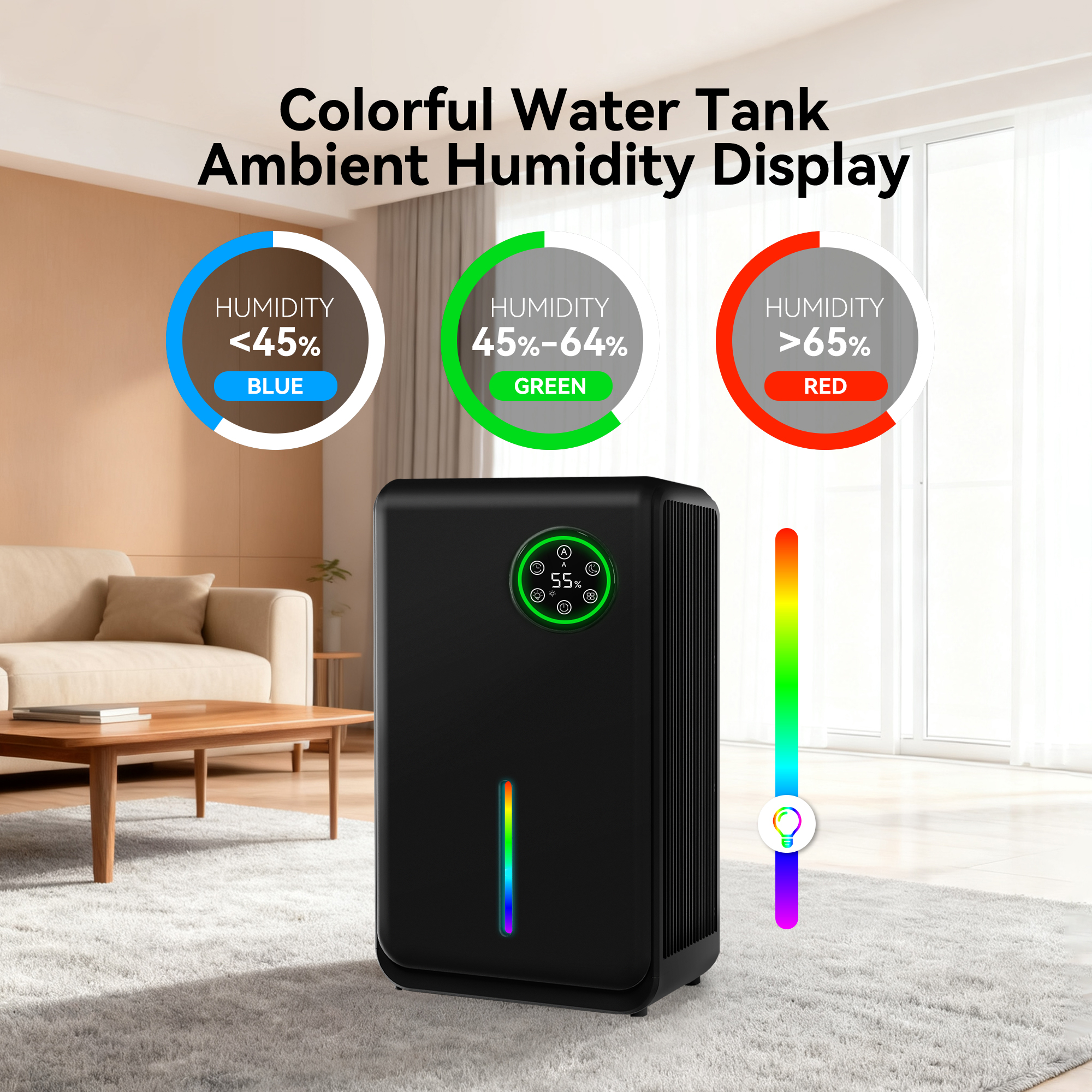 HUMSURE Semiconductor Dehumidifier (120oz High-Capacity Dehumidification) LED, with Smart Remote Control, Timer, 7-Colour Ambient Lighting, Drain Hose, Sleep Mode, Energy-Efficient Dehumidifier